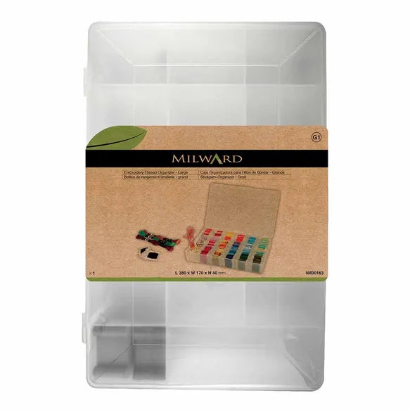 Met deze praktische opbergdoos van Milward houd je je borduurgaren netjes gesorteerd en overzichtelijk bij elkaar. De doos is gemaakt van helder kunststof en beschikt over een indeling met 6 rijen, zodat je gemakkelijk verschillende kleuren en soorten garen kunt opbergen.