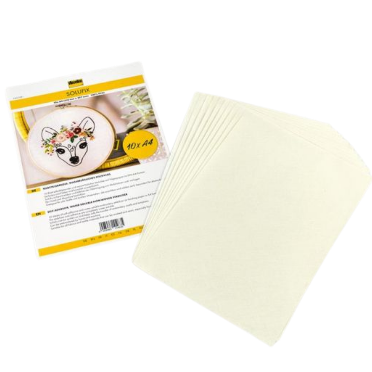 Vlieseline Solufix is perfect voor het overzetten van patronen, vooral bij lastige stoffen of wanneer je direct op kleding wilt borduren. Het handige A4-formaat zorgt ervoor dat de vellen zonder vouwen bij je aankomen én dat ze direct in je printer passen.